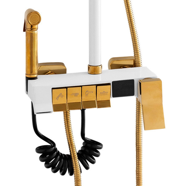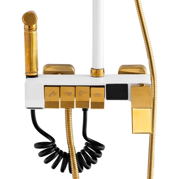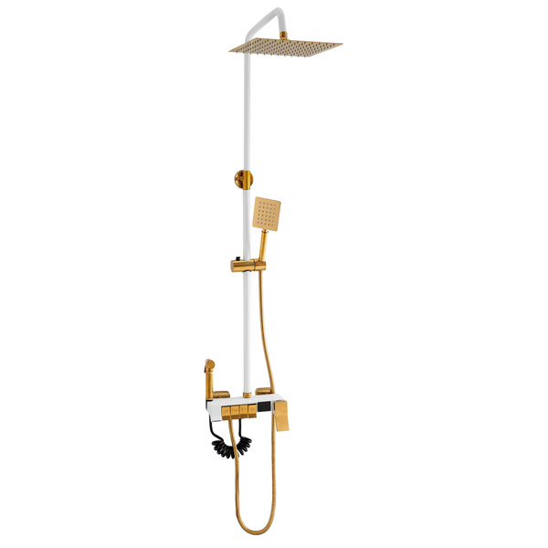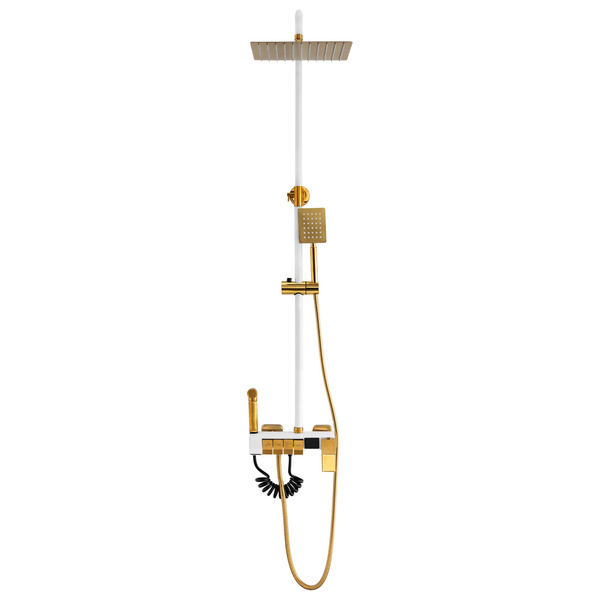 Zestaw prysznicowy natynkowy CLARA biało-złoty – nowoczesna elegancja z nutą luksusu