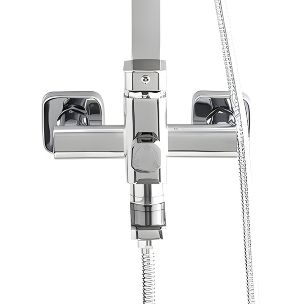 Duża, kwadratowa deszczownica zapewnia równomierny, kojący strumień wody, natomiast nowoczesna słuchawka ręczna oferuje wygodę w codziennym użytkowaniu. Jednouchwytowa bateria umożliwia łatwą i precyzyjną regulację temperatury, a praktyczny przełącznik pozwala szybko zmienić źródło wody. Mosiężna konstrukcja gwarantuje trwałość i odporność na korozję, a montaż natynkowy umożliwia szybkie odświeżenie przestrzeni kąpielowej.