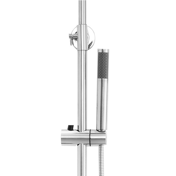 Okrągła deszczownica oferuje przyjemny, równomierny strumień wody, natomiast poręczna słuchawka umożliwia wygodne codzienne użytkowanie. Dwupokrętłowa bateria pozwala precyzyjnie regulować temperaturę, a przełącznik zapewnia łatwe przełączanie między głowicą górną a słuchawką. Mosiężna konstrukcja zapewnia trwałość i odporność na korozję.