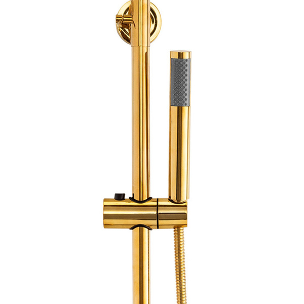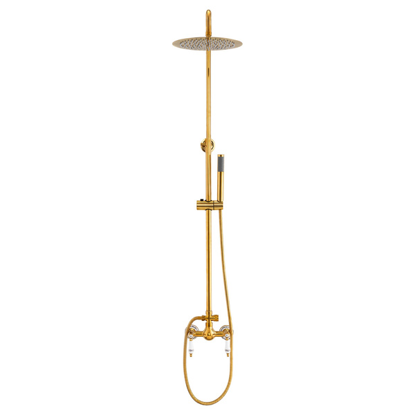 Zestaw prysznicowy natynkowy złoty z deszczownicą i słuchawką – klasyczna elegancja i wysoka jakość