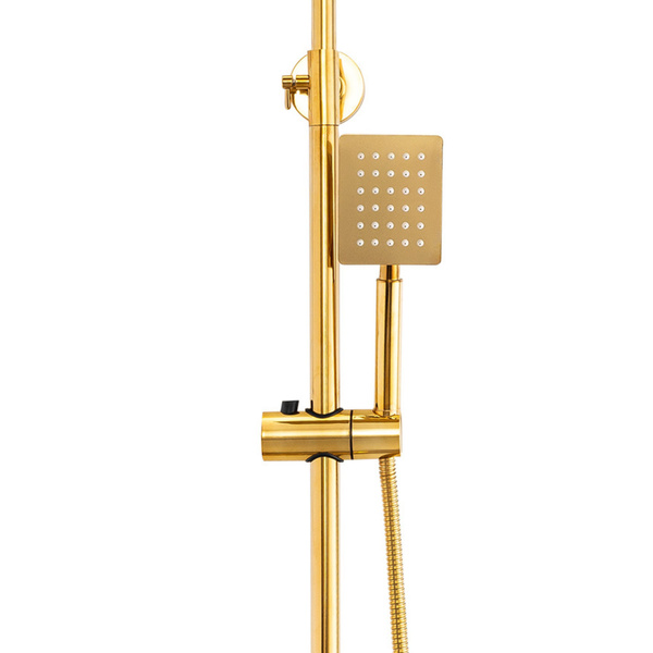 Zestaw prysznicowy natynkowy złoty z deszczownicą i słuchawką – nowoczesny luksus w Twojej łazience
