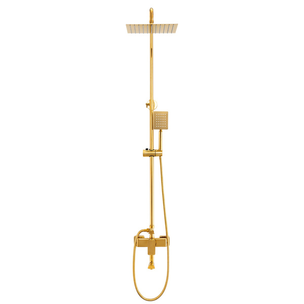 Zestaw prysznicowy natynkowy AURORA w kolorze złotym to propozycja dla osób ceniących elegancję, funkcjonalność i niebanalny styl. Błyszczące złote wykończenie w połączeniu z prostokątną formą baterii oraz nowoczesnym designem słuchawki i deszczownicy podkreśla luksusowy charakter łazienki.