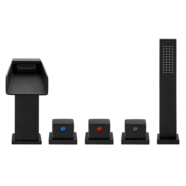 Bateria wannowa 5-otworowa w kolorze czarnym matowym to połączenie nowoczesnego designu, funkcjonalności i trwałości. Jej geometryczna, minimalistyczna forma w eleganckiej czerni podkreśla charakter nowoczesnych aranżacji łazienkowych.
