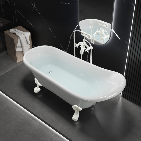 WANNA WOLNOSTOJĄCA ISABEL AKRYLOWA RETRO 160 X 75 CM BIAŁA, NOGI BIAŁE